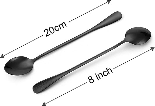 Marco Almond® KYA59 Iced Tea Spoon, Ice Cream Spoon, Titanium Coated Stainless Steel Long Handle Spoons for Coffee, Cocktail Stirring, Milkshake, Latte, Pack of 8, Black