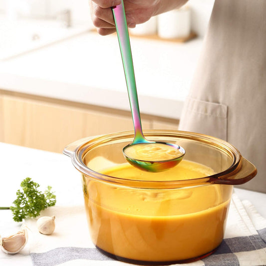 Utensil Set, Marco Almond® KYA52 Kitchen Stainless Steel Cooking Utensils Sets with Titanium Plated, 6 PCS Kitchen Turner, Serving Spoon, Ladle, Skimmer, Fork and Pasta Server, Rainbow